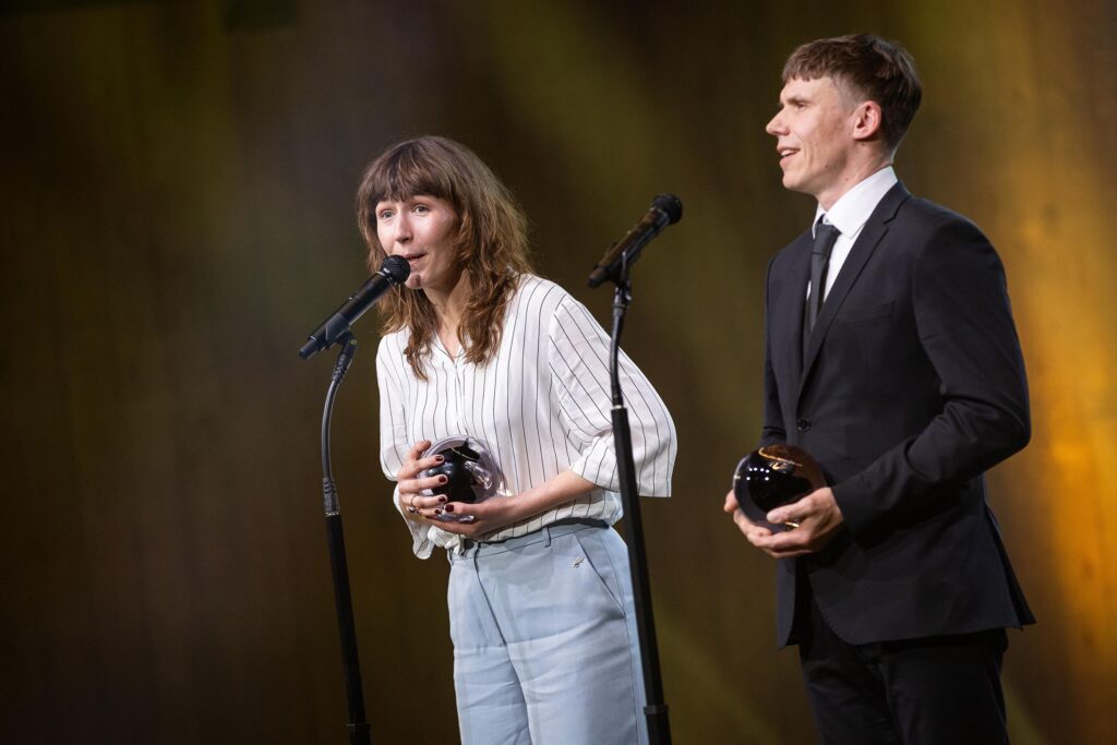 Grete Jürgenson teatriauhindade galal auhinda vastu võtmas. Foto autor: Siim Lõvi (ERR)